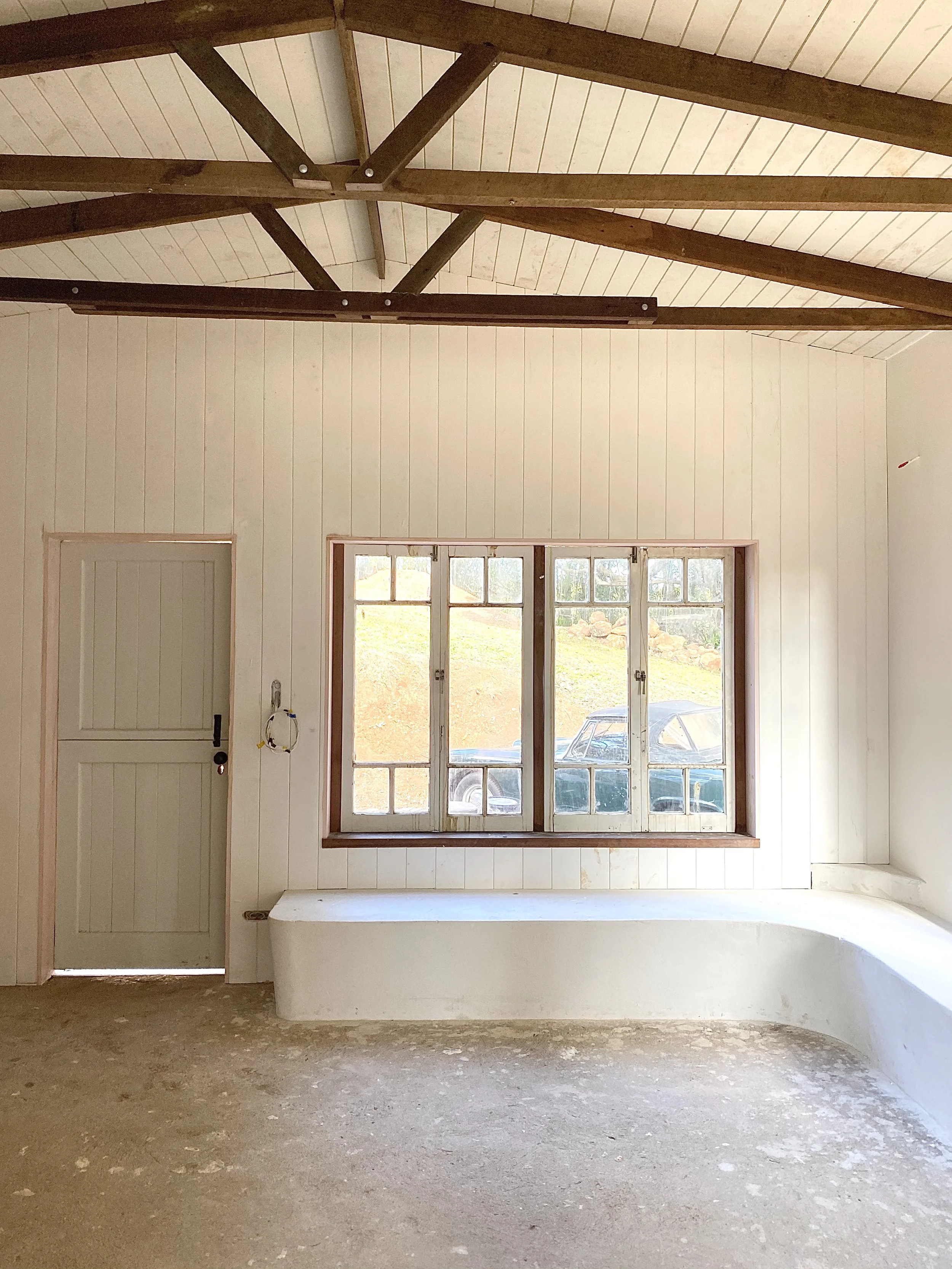 Tip — If you plan to use the built-in seating for a dining table, consider the height of your table and the height of dining chair seat to guide you. If you are designing it for a lounge room, use a sofa seat height — this will ensure it is ergonomic. Don’t forget to include the height of any seat cushions in this dimension.Once you’re happy with your design, engage a local trade (or if you can, do it yourself!) to create the frame-work. We used a carpenter and a plasterer to get a rendered finish. Don’t forget to be specific about how you what the edges to be finished (sharp edges have a tendency to chip over time).