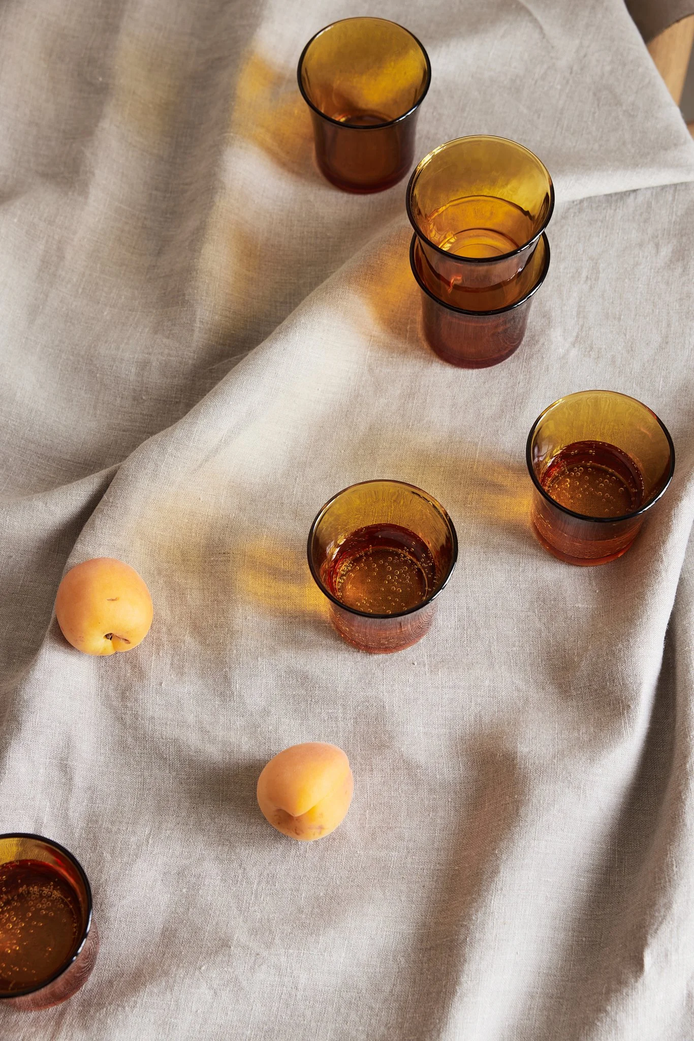 These amber glasses were from Imprint House (try these for something similar), but you can often find similar vintage styles at local charity shops. For a similar effect, serve kombucha or Aperol Spritz in a clear glass!